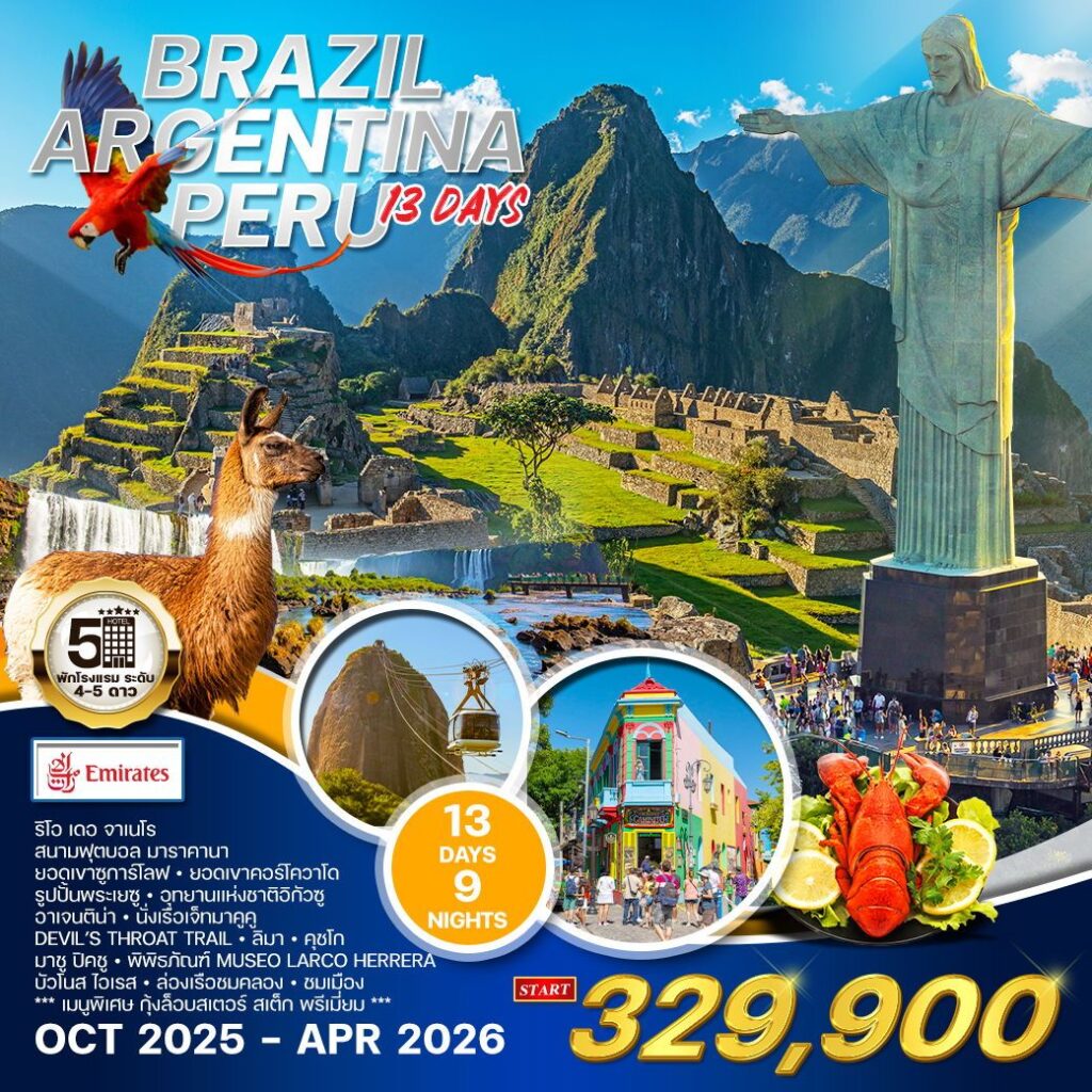 ทัวร์อเมริกาใต้ บราซิล อาร์เจนตินา เปรู 13วัน11คืน By Emirates