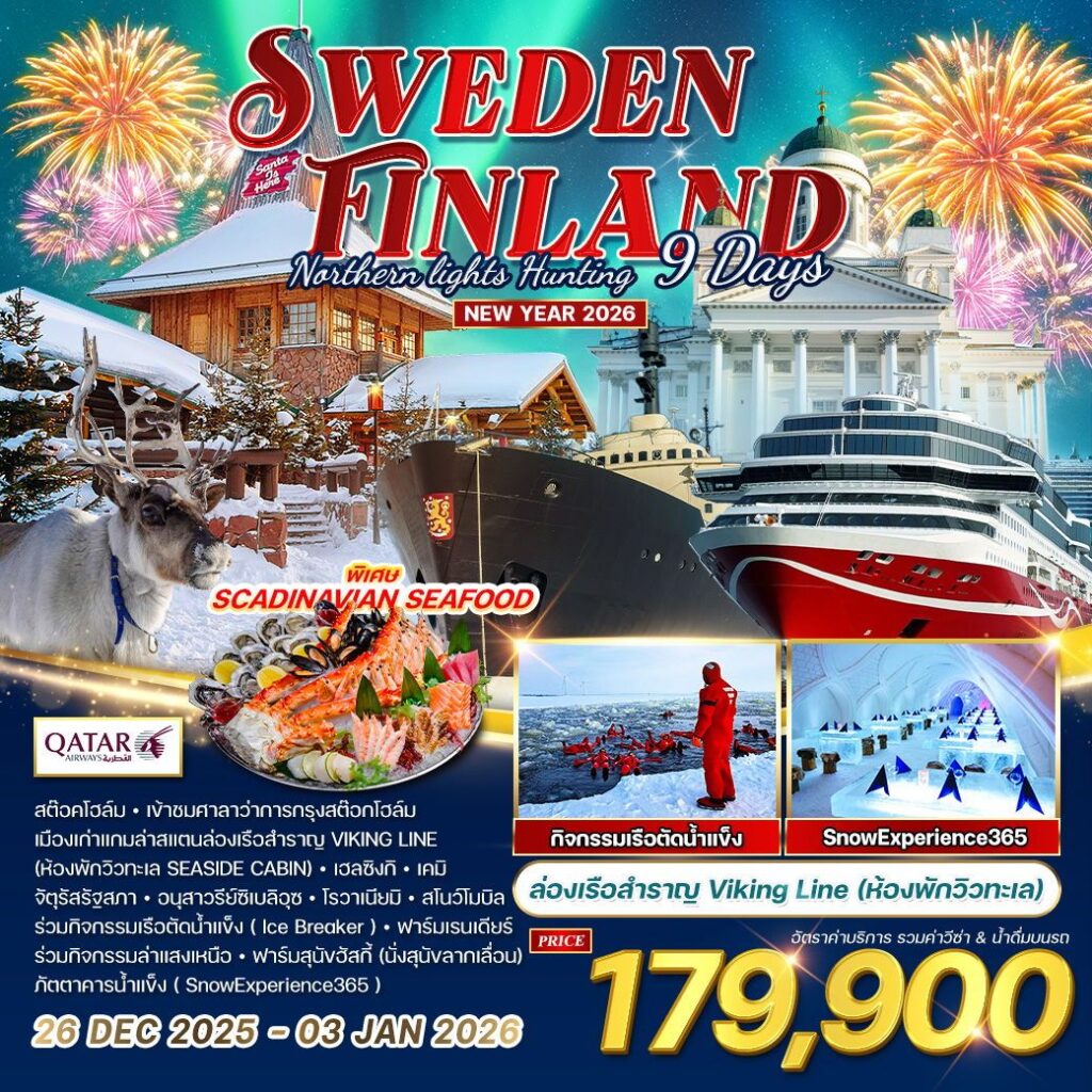ทัวร์ฟินแลนด์ สวีเดน ฉลองปีใหม่ ล่าแสงเหนือ 9 วัน 6 คืน By Qatar Airways