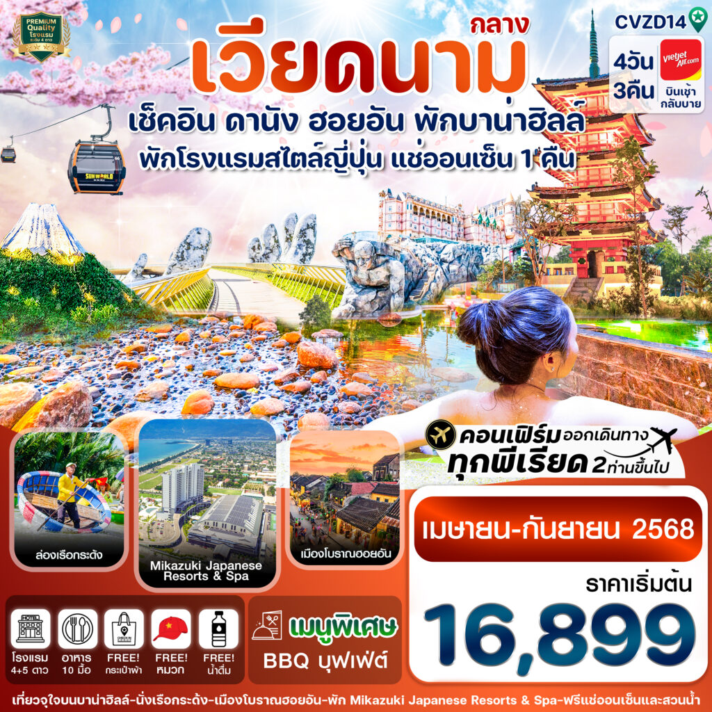 ทัวร์เวียดนาม ดานัง ฮอยอัน พักบานาฮิลล์ แช่ออนเซ็น 4วัน3 คืน By Thai AirAsia X