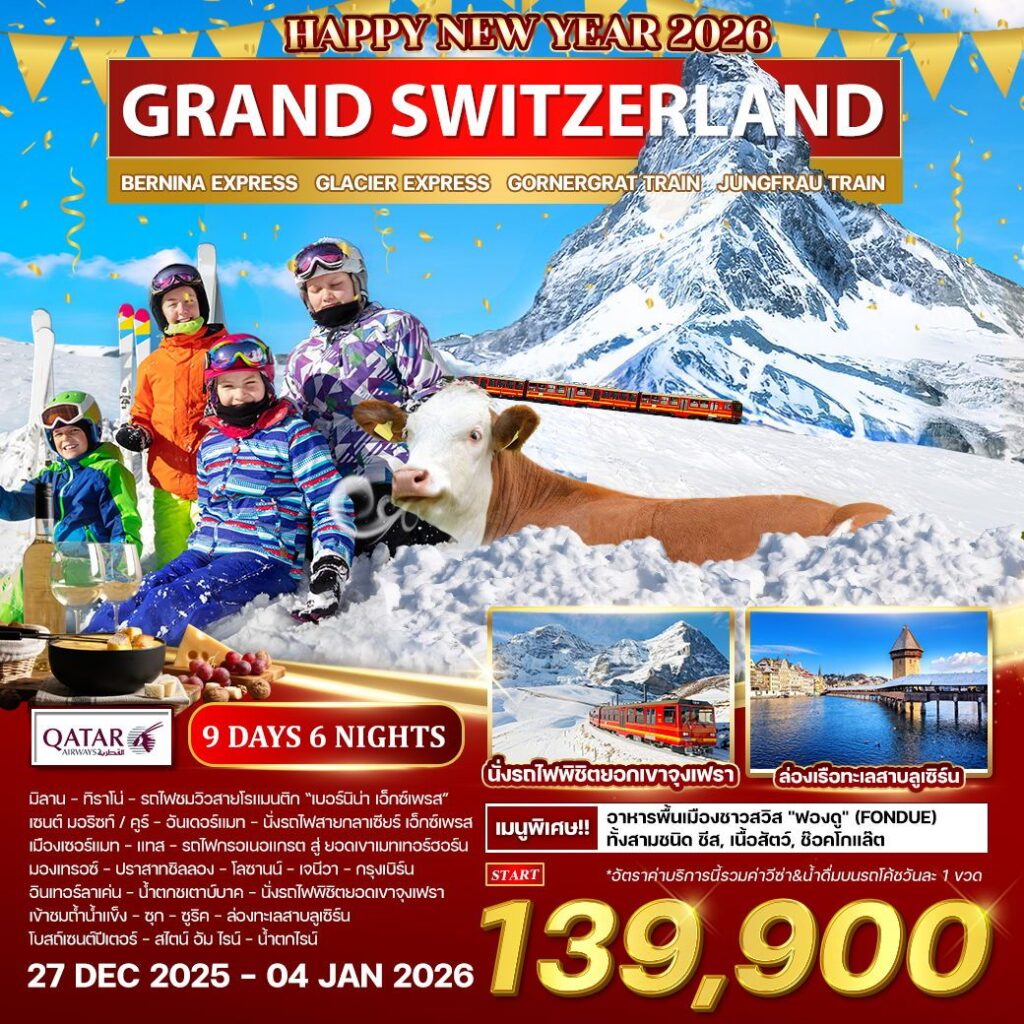 ทัวร์แกรนด์ สวิตเซอร์แลนด์ 9 วัน 6 คืน ฉลองปีใหม่ By Qatar Airways
