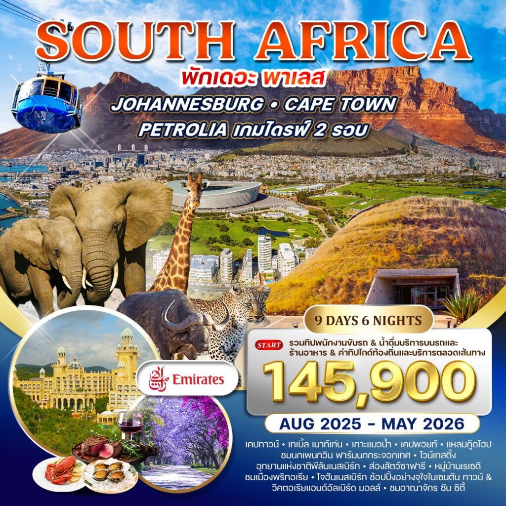 ทัวร์แอฟริกาใต้ โจฮันเนสเบิร์ก ซาฟารี 9วัน6คืน By Emirates